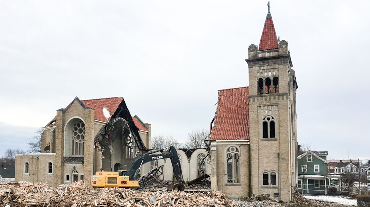 St. Charles Borromeo Church in Dover, New Hampshire is coming down, making room for “workforce housing.” The above photograph, which