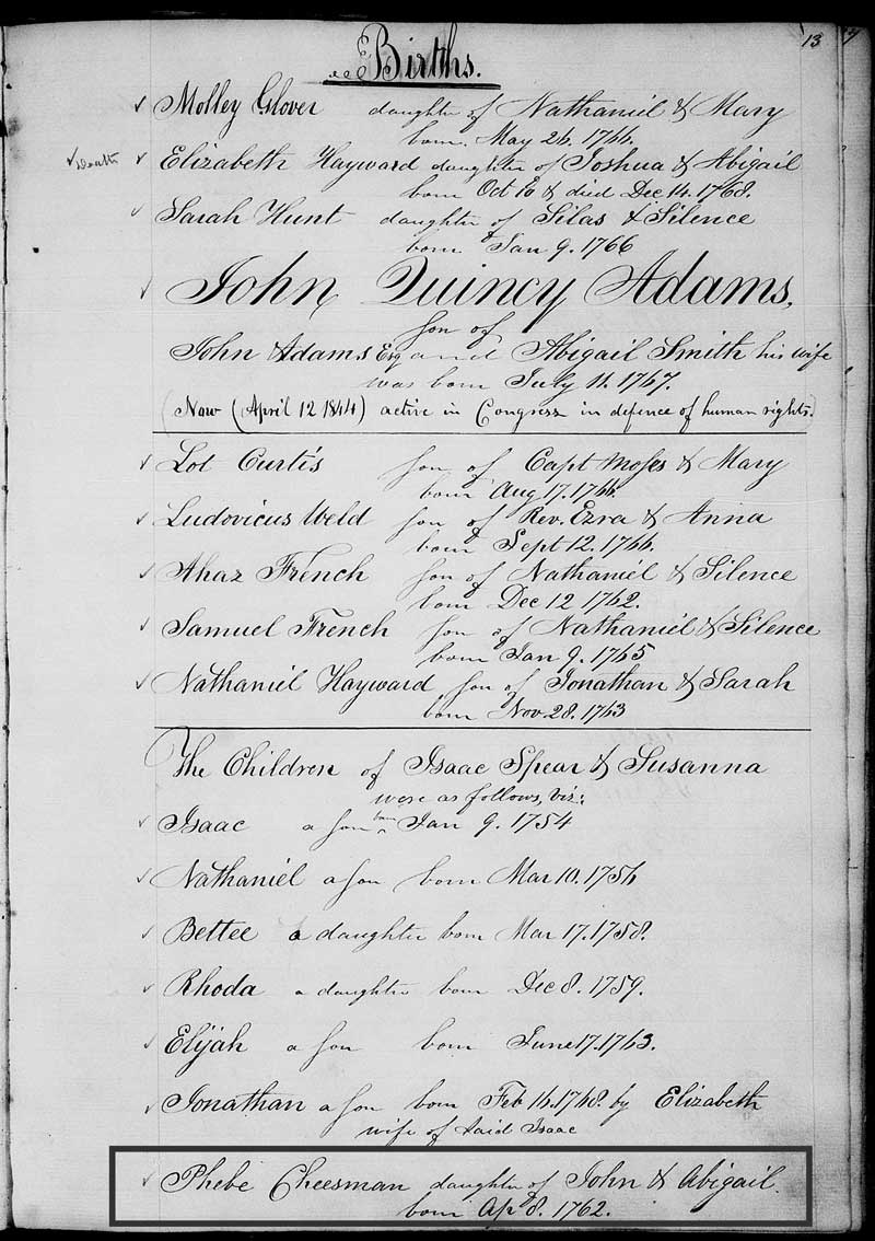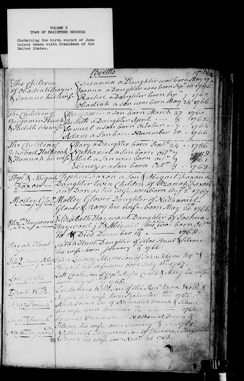 John Quincy Adams Son of John Adams Esqr & Abigail his wife was born July 11th 1767.